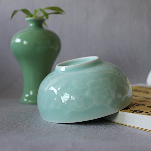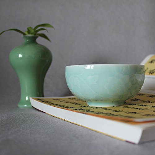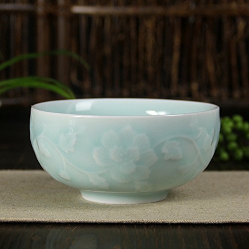 Chinese Celadon Rice Bowl Engraved Peony 4.5Inch Dinnerware Porcelain(1, Sky Blue)