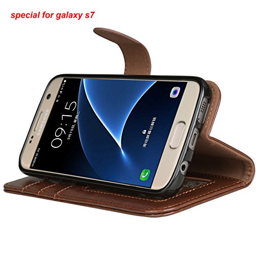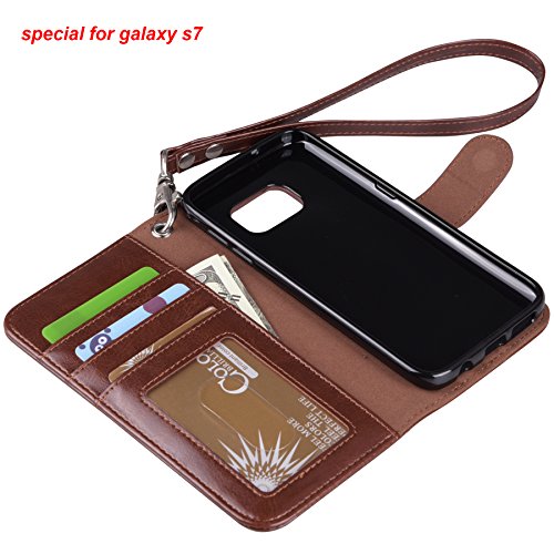 Galaxy s7 Case, Arae [Wrist Strap] Flip Folio [Kickstand Feature] PU leather wallet case with ID&Credit Card Pockets For Samsung Galaxy S7 (brown)