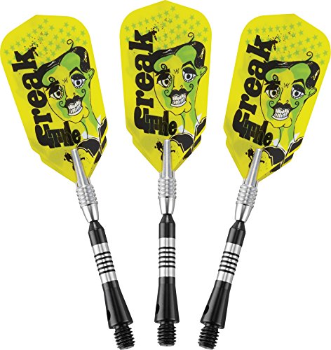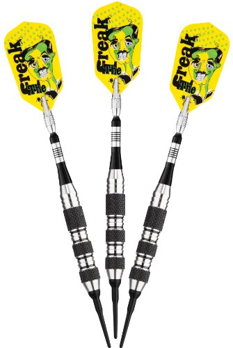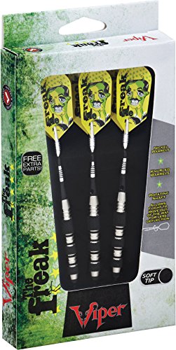 -. Binding : Sports -. Brand : Viper by GLD Products -. Feature : Designed with high quality nickel silver plated barrels that provide exceptional balance and styling / Strategically placed rings and grooves provide excellent gripping points, enhancing your control / Yukon Spinster aluminum shafts with locking hole increase tightness and improve stability / Each shaft rotates upon dartboard impact, greatly reducing the chance of deflection / Includes an additional 3 convex nylon shafts, a dart mechanic tool, 2BA Tufflex Tips II soft tip dart points and 6 high speed slim flights -. Genre : sport -. Label : Viper by GLD Products -. Manufacturer : Viper by GLD Products -. ProductGroup : Sports -. ProductTypeName : SPORTING_GOODS -. Publisher : Viper by GLD Products -. Studio : Viper by GLD Products -. Title : Viper The Freak Soft Tip Darts