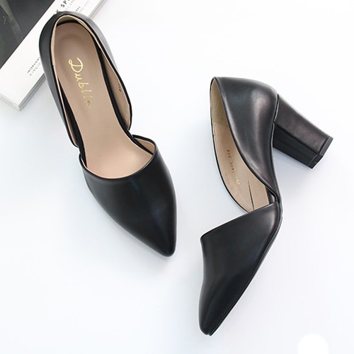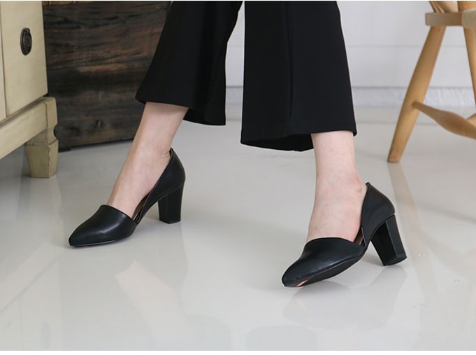商品名:パンプス レディース 太ヒール チャンキーヒール サイドオープン 2018 春 ファッション 靴 婦人靴