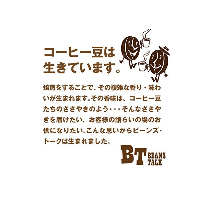 【BEANS TALK 컨셉】 원두커피는 살아 있습니다. 배전을 하는 것으로,그 복잡한 향기(풍미)맛가 태어납니다.그 향기 맛은,원두커피 들의 속삭임의자 그런 속삭임을 신선한 상태에서 신고해 대,고객의 대화의 장소의 수행이 되어 대.이런 생각부터 빈즈 토크는 태어났습니다.
