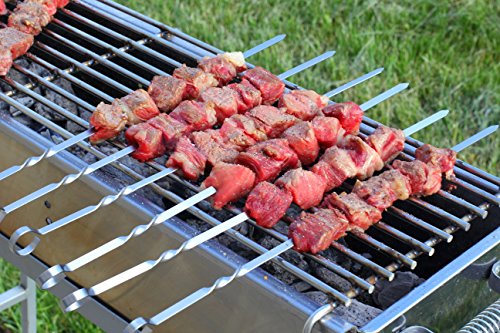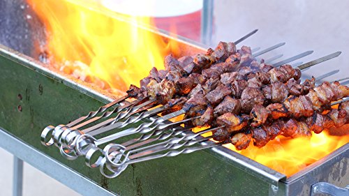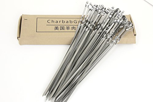 15-inch Stainless Steel Flat Shish Kebab BBQ Skewers with S-hook Value Pack of (50)