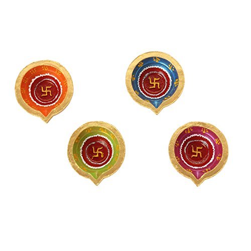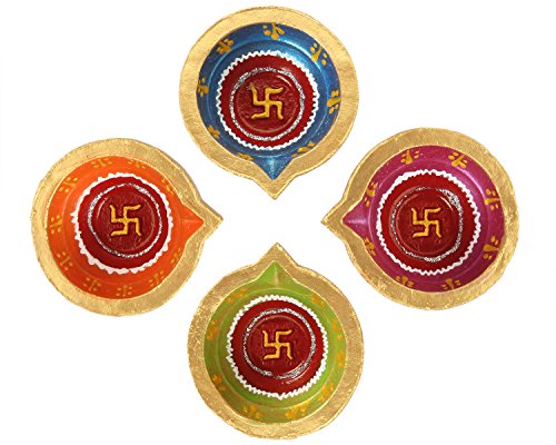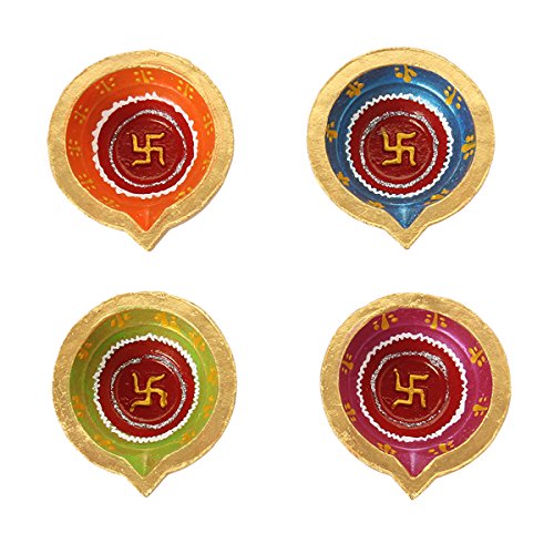 Set of 4 Handmade Decorative Diwali Clay Diyas For Diwali Decoration Swastik Painted Terracotta Clay Oil Lamps