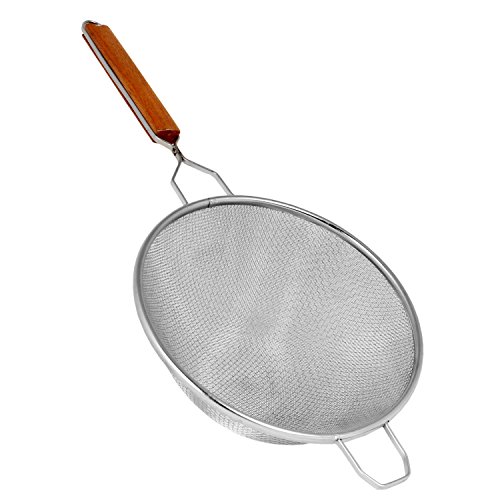 Excellante Tin Strainer with Wooden Handle, Single, Medium, 10"