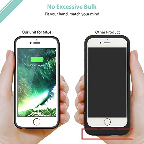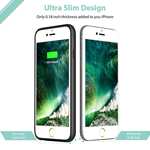 THIN AND LIGHTWEIGHT: Smiphee iPhone 6/6s battery case is one of the slimmest charging case, adding only 0.18 inch and 2.22 oz to your iPhone 6/6s, thinner and thinner,feel like feather.