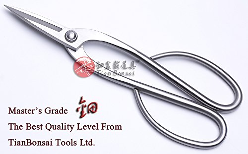 -. Feature : Quality: master's grade, handmade by the master worker from TianBonsai, have the best quality in our tools. / Material detail: the Top Pruning Scissors, manufactured via 5Cr15MoV stainless steel. / Hardness detail: Top Pruning Scissors was differential heat treatment by the high frequency machine, the working edge's hardness is over HRC58. / Quality Assurance: 3 Years, in normal use, if the tools have any problem, we will resending a new one to you without any fee, you just need to take a photo to us to show the problem.