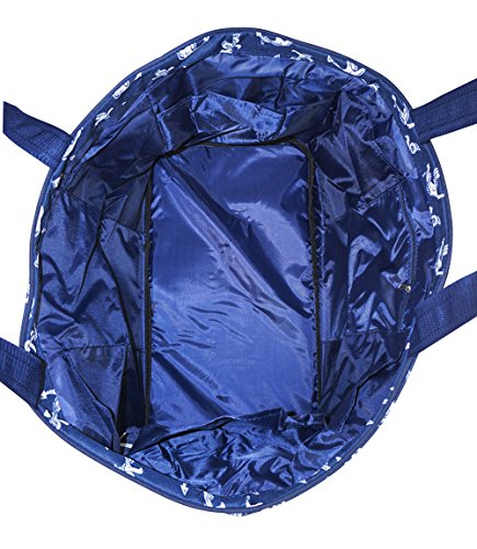 Product Description This fashionable print tote bag is surely to be a statement. Constructed of durable canvas and spacious enough to carry all your needs, this terrific tote bag is sure to grab attention. Additional features include an internal zippered pocket for a wallet, cell phone, and keys, as well as a six internal pockets. 12-inch handle drop to allow for hand carrying or over the shoulder. This bag is definitely a plus to any wardrobe. 0