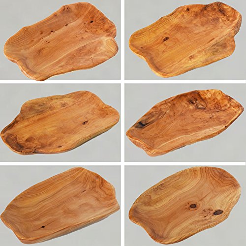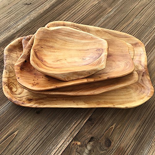 How nice to see the natural character in the platter, while respecting the part of the life of a tree went into making it! Each Cospring wooden platter is unique since it is a natural product and wood grain varies by year and the tree grows. The platter is from ONE solid piece of hard wood, NOT from pressed and glued pieces. Each platter is manual grinding and hand sealed with natural plant oily finish which is food safe. COSPRING root wooden platter is hand-carved by skilled artisans with their wisdom and imagination. The artisans carve the shape into flowing lines that follow the original piece of wood, and hollowed it out to make a platter. The making process includes barking, creating, anti-bacterial treatment, anti-insect treatment, drying, polishing, painting, and waxing. There are various shades of grey, brown and red that really make the trays unique. The colors come from the root being under the ground and picking up minerals from soil. They are spectacularly beautiful though, and highly prized for their unique grain patter. The platter would look great on a coffee table or as a centerpiece. ATTENTION Hand wash with warm soapy water and air dry. Please avoid the wood products being kept in dishwasher, microwave oven, dryer or exposure under sunlight. Periodically wipe with a bit of olive oil, using a towel and wipe off the excess to restore the wood grain to its original beauty when it appears to be drying out. You will have years of enjoyment with proper care. 0