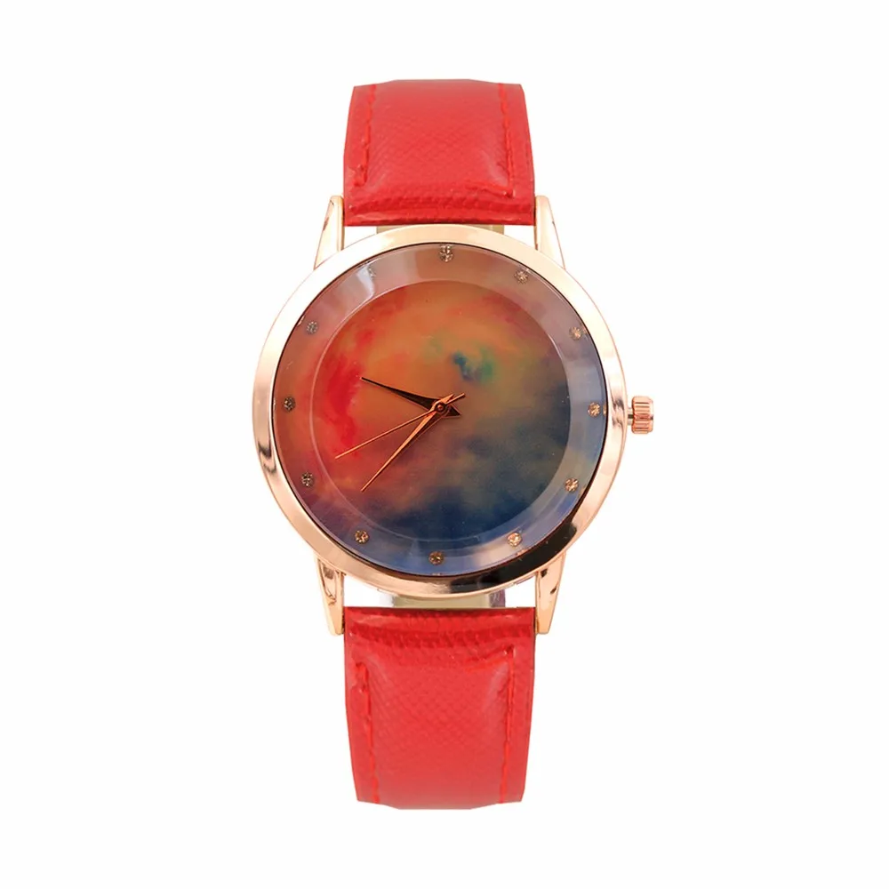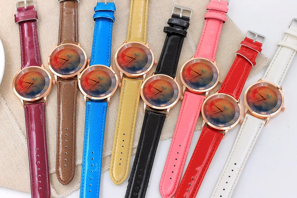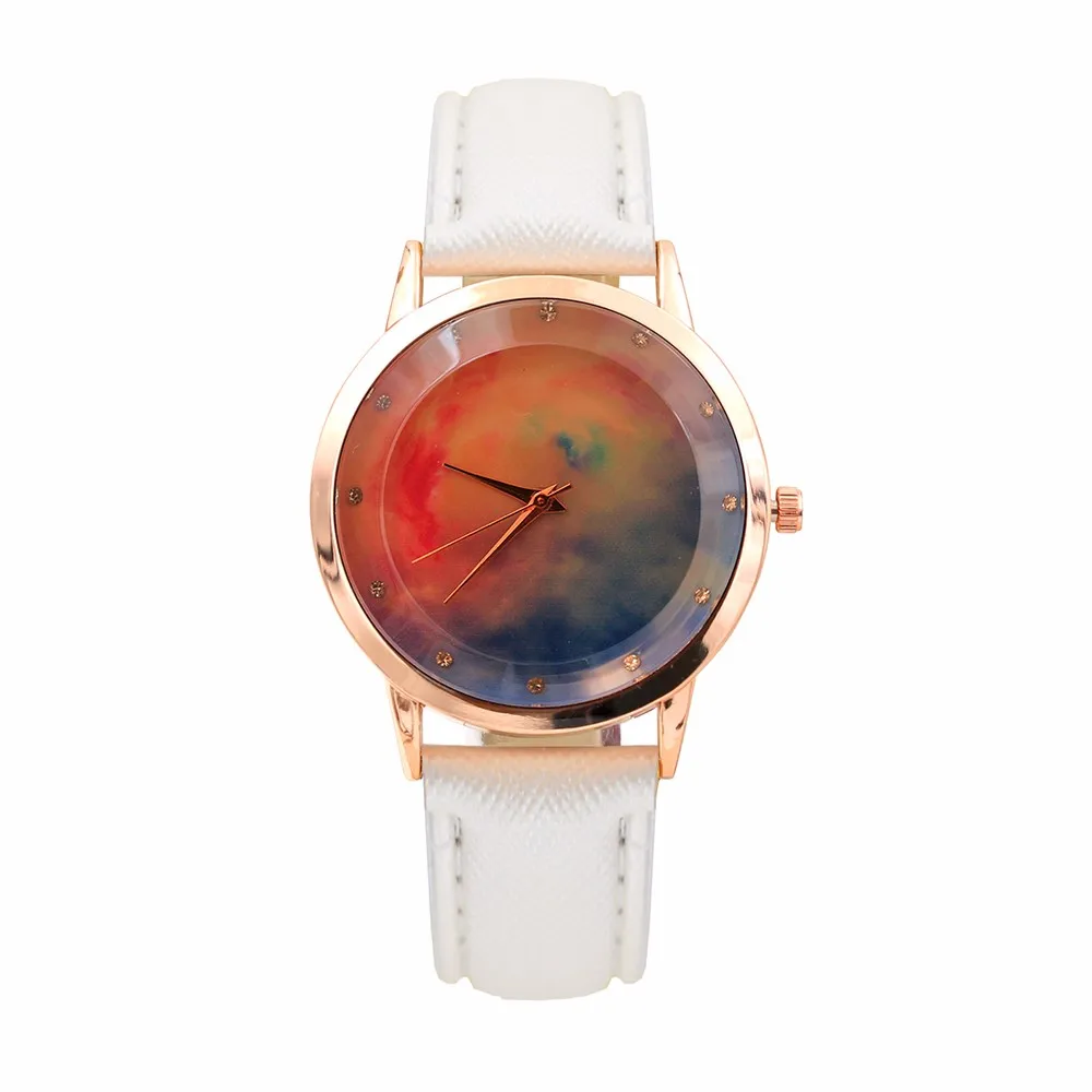 여성 패션 컬러 스트랩 디지털 다이얼 가죽 밴드 석영 아날로그 손목 시계