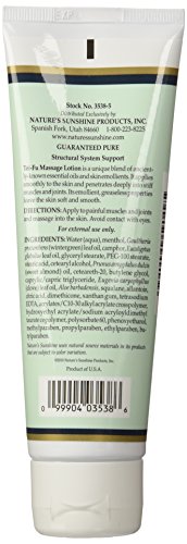 Tei Fu® Massage Lotion [Structural] provides all of the benefits of Tei Fu Essential Oils but in a creamy lotion form. It's especially designed for broad skin application. It also leaves the skin smooth and supple. Contains essential oils of menthol, wintergreen, camphor, eucalyptus and clove. Now packaged in a tube for easy application and improved stability. Apply to painful muscles and joints and massage into the skin. Avoid contact with eyes and nose. For external use only.Feature