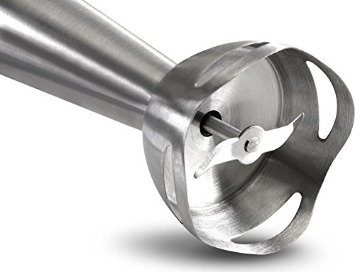 The 8 inches removable blending arm locks into the motor so that you can have a safer blending experience with ease when operating in deeper pots. The stainless steel blade (304) quickly blends ingredients for shakes, soups, smoothies and much more. It's soft and non-slip grip handle offers great comfort at the time of continues blending. It has a powerful and energy saving DC motor for providing smooth operation.