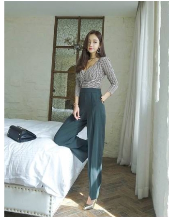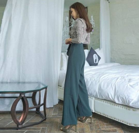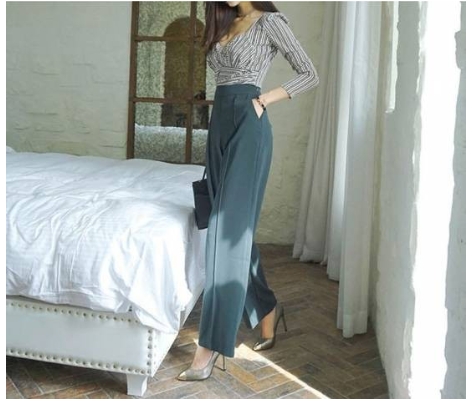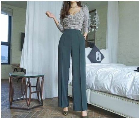脚長効果の高い、ハイウエストのセンタープレス入りのワイドパンツで、