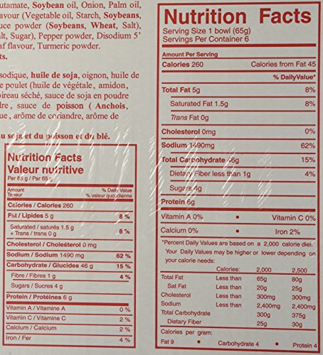 6 bowls of instant rice noodles with artificial chicken flavoring.
