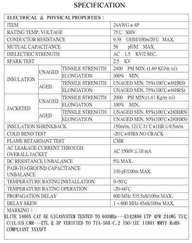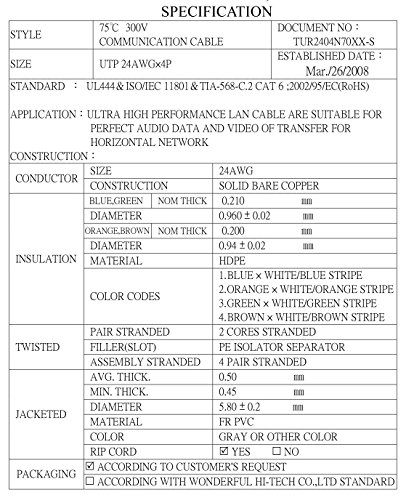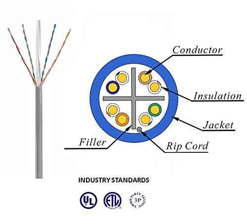 Designed with headroom for tomorrow's emerging high speed LAN technologies, these Cat6 plenum bulk (LAN) cables are perfect for Gigabit Ethernet, ATM and Broadband Video. CAT 6 cmp Category 6 (ANSI/TIE/EIA-568-B is a cable standard for Gigabig Ethernet and other network protocols that is backward compatible with the Category 5/5e and Category 3 cable standards. Cat-6 plenum features more stringent specifications for crosstalk and system noise. The cable standard provides performance of up to 250 MHz and is suitable for 10BASE-T / 100BASE-TX and 1000BASE-T (Gigabit Ethernet). It is expected to suit the 10GBASE-T (10Gigabit Ethernet) standard, although with limitations on length if unshielded Cat 6 plenum cable is used. The cable contains four twisted copper wire pairs, just like earlier copper cable standards. Although CAT6 plenum is sometimes made with 23 gauge wire, this is not a requirement; the ANSI/TIA-568-B.2-1 specification states the cable may be made with 22 to 24 AWG gauge wire, so long as the cable meets the specified testing standards. When used as a patch cable, CAT-6 is normally terminated in 8P8C modular connectors, often incorrectly referred to as ôRJ-45ö electrical connectors. Some CAT6 plenum cables are too large and may be difficult to attach to 8P8C connectors without a special modular piece and are technically not standard compliant.