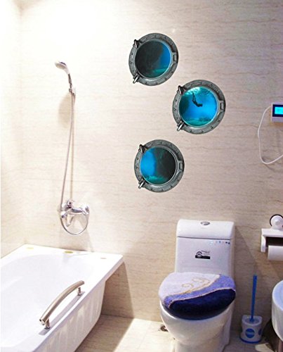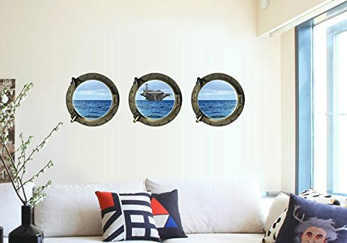 -. Title : Glamorway Pack of 3Pcs 30cm*30cm Wall Sticker 3D Porthole Window Kids Room Home Decor Art
