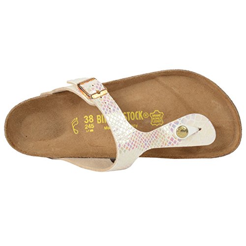 Studio : Birkenstock Publisher : Birkenstock Binding : Shoes Product Description *A popular, foot-forming sandal with a twist *"Easy-to-clean" shiny leather-like upper *Cork/latex footbed with deep heel cup *Lightweight EVA sole *Longitudinal arch and metatarsal support *Please order Euro size and width: *N (Fits 2A B) *M (Fits C D) *36 (Fits 5 to 5-1/2) *37 (Fits 6 to 6-1/2) *38 (Fits 7 to 7-1/2) *39 (Fits 8 to 8-1/2) *40 (Fits 9 to 9-1/2) *41 (Fits 10 to 10-1/2) *42 (Fits 11 to 11-1/2) 0