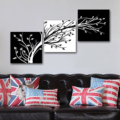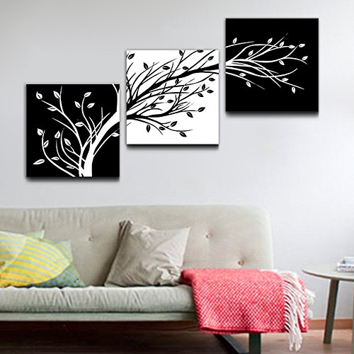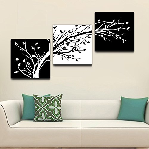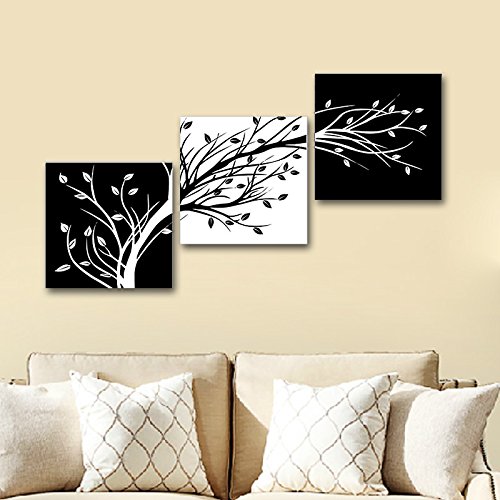 -. Title : Wieco Art - 3 Panels Canvas P.R.Int, Stretched and Framed, Black and White Leaves Modern Canvas Wall Art for Home Decor,Abstract Canvas Art P3RAB003