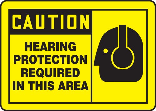 Accuform Signs MPPE410VP Plastic Safety Sign, Legend "CAUTION HEARING PROTECTION REQUIRED IN THIS AREA" with Graphic, 7" Length x 10" Width x 0.055" Thickness, Black on Yellow