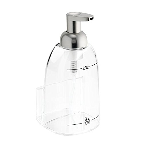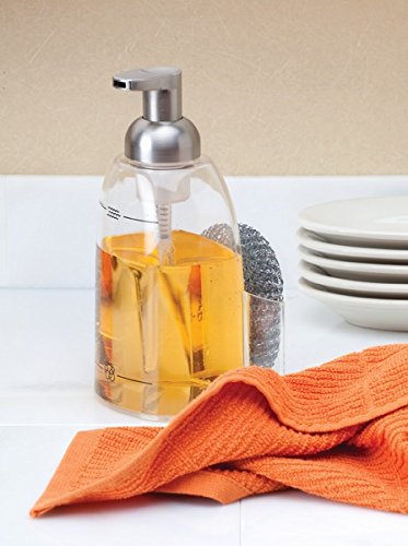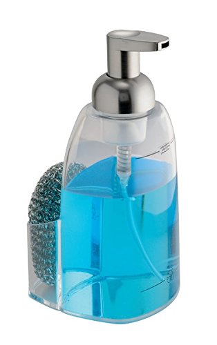 mDesign Kitchen Foaming Soap Dispenser Pump and Sponge/Scrubby Holder - Clear/Brushed Nickel