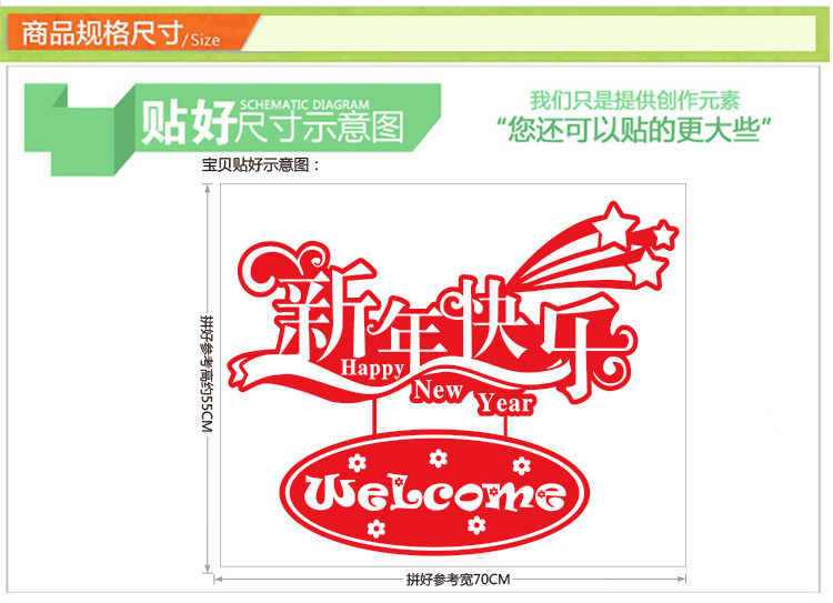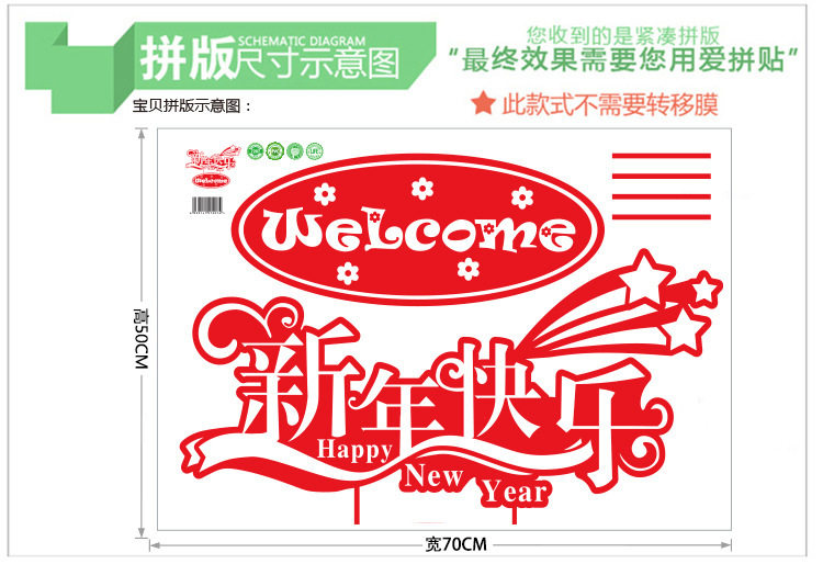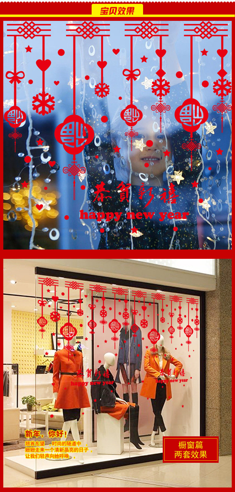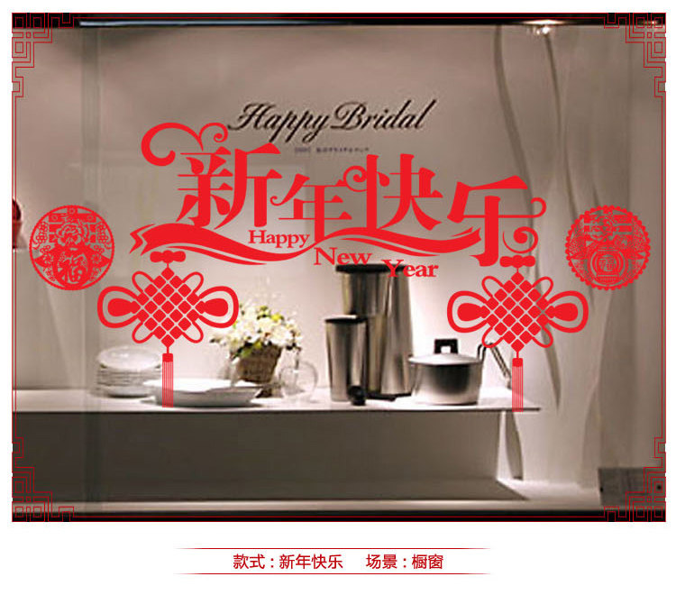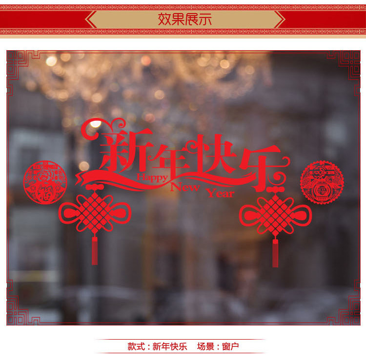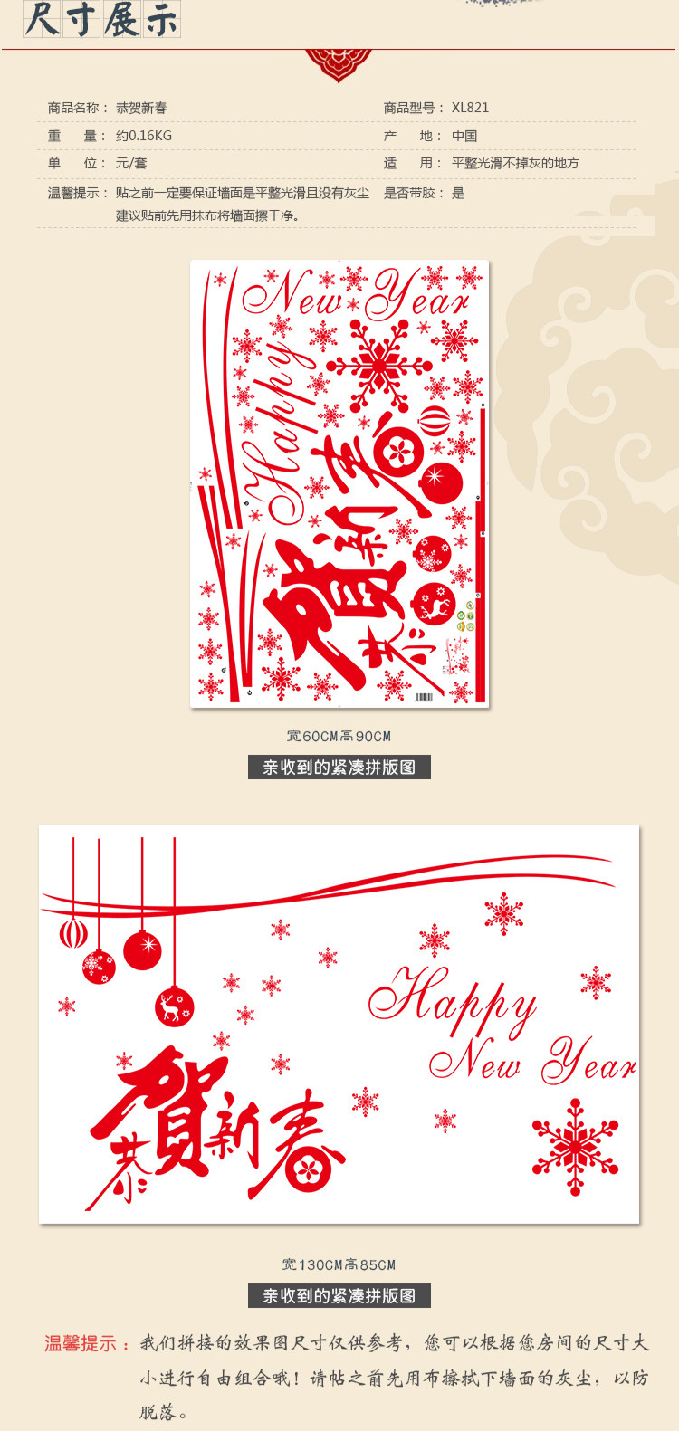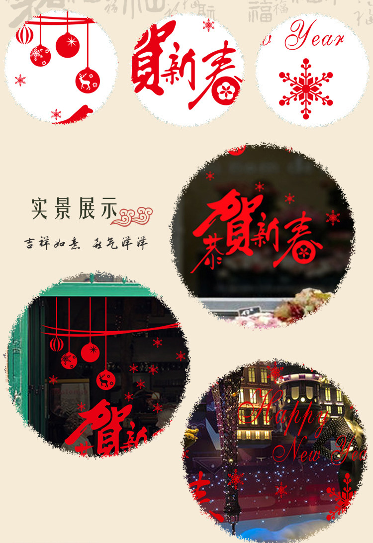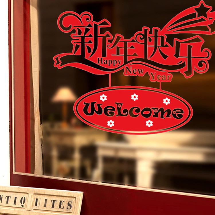 D. Removable New Year's Day wall stickers restaurant shopping malls school doors and windows layout glass stickers Happy New Year wallpaper paste