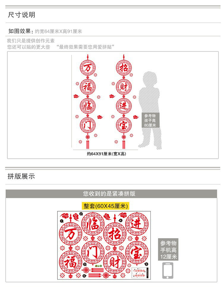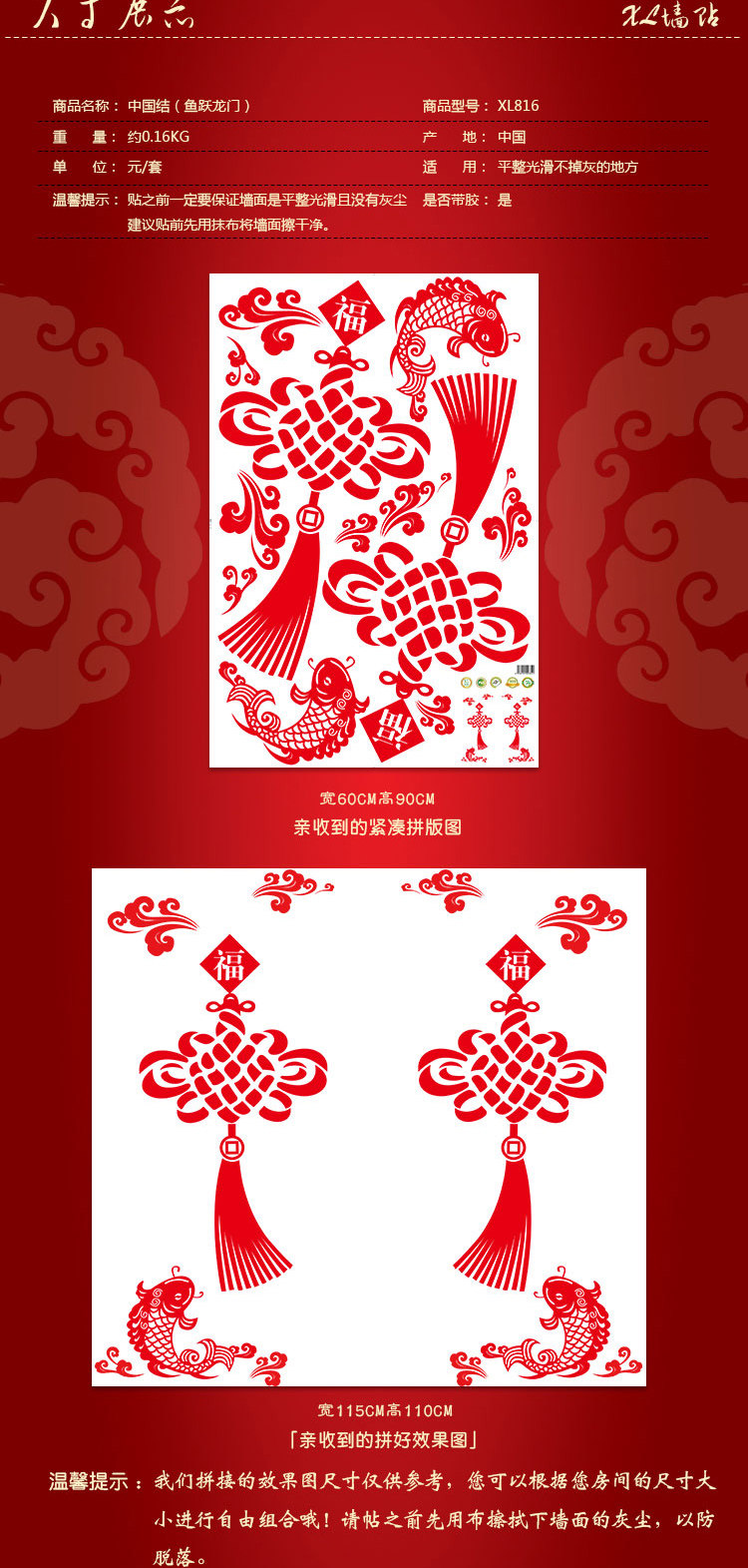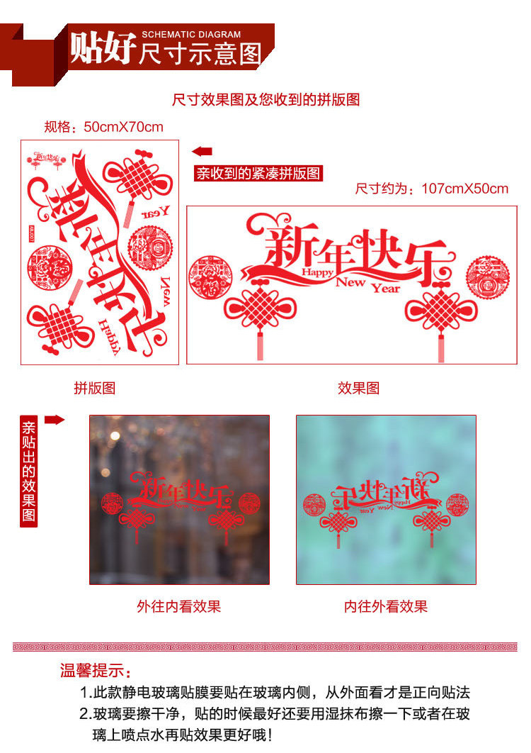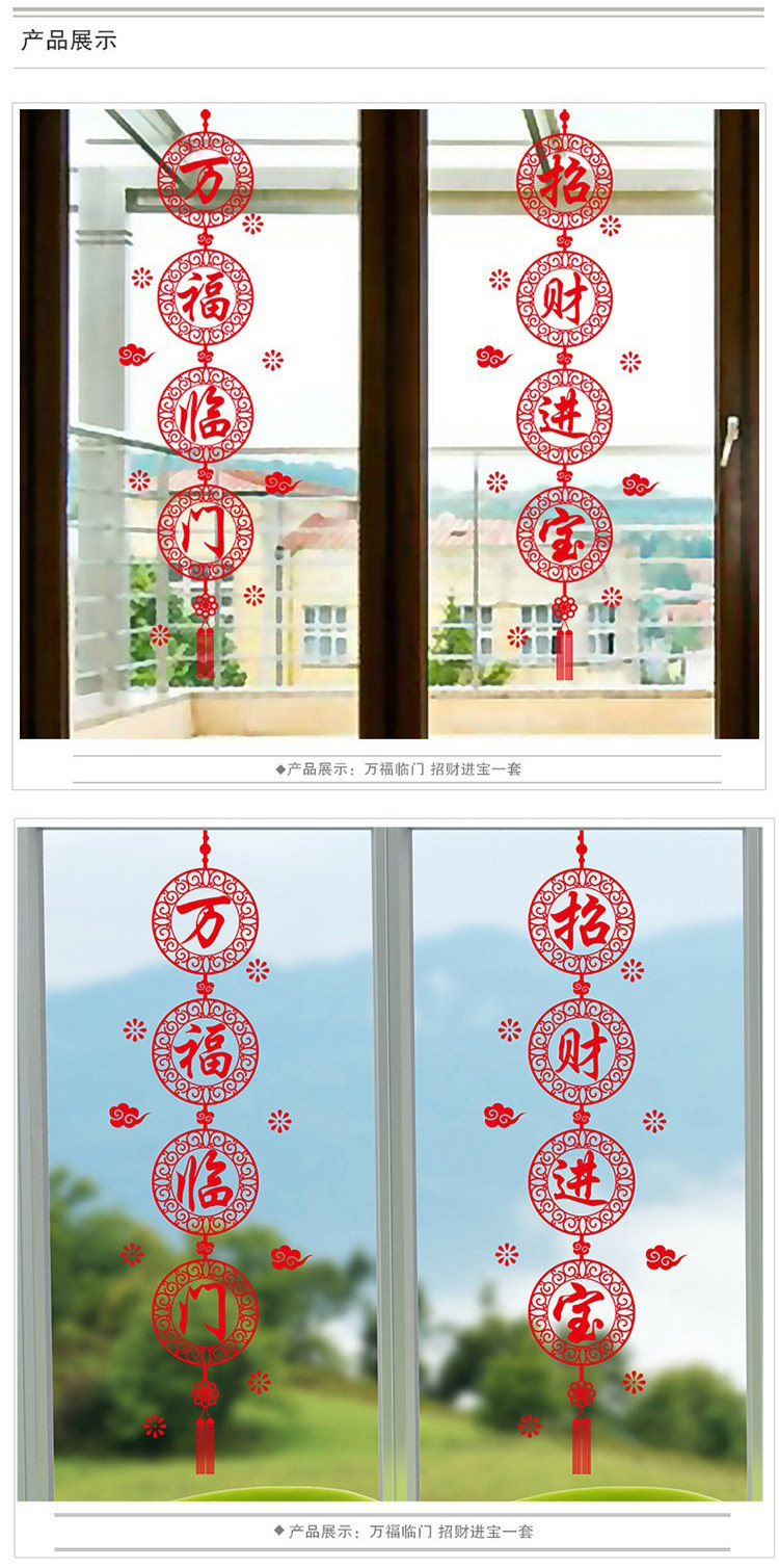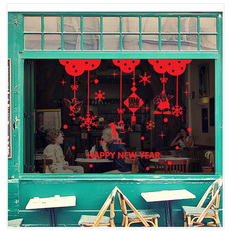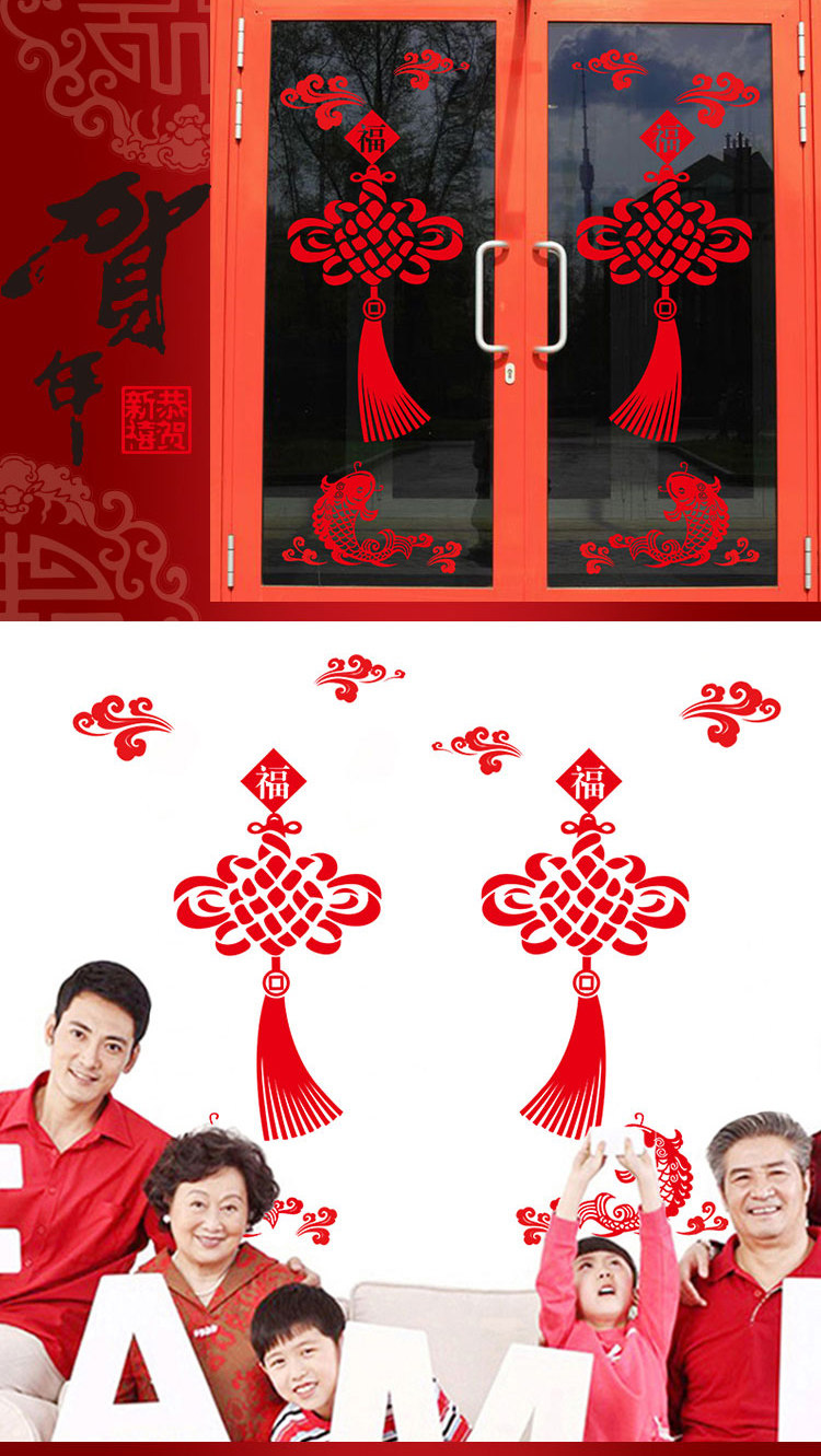 H. Removable New Year decorative wall stickers bedroom living room Chinese New Year glass stickers doors and windows decals too big window grilles New Year