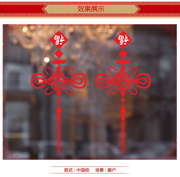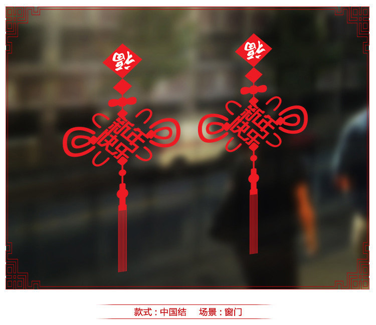 G.2017 New Year's Day New Year decoration restaurant shopping mall windows and doors glass electrostatic stickers Spring Festival window grill Chinese knot stickers