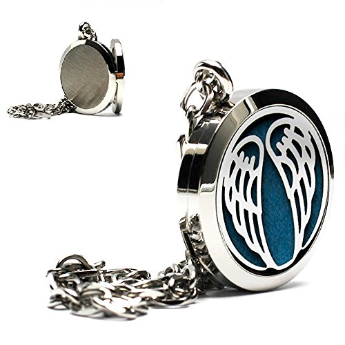 CrazyPiercing Stainless Steel Angel Wing Essential Oil Diffuser Locket Pendant Necklace with 12Refill Pads