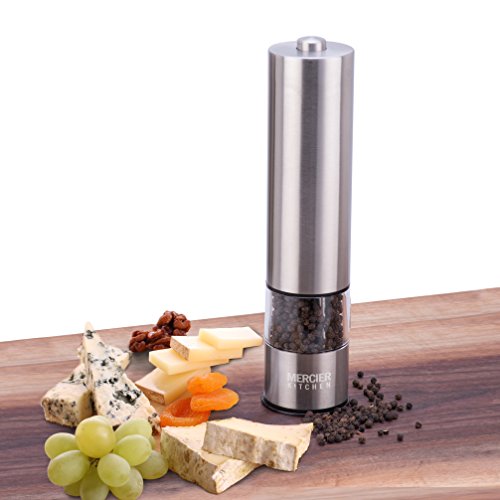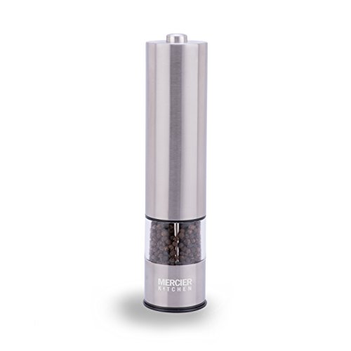 MERCIER Automatic Electric Salt or Pepper Grinder Mill, Battery Powered with LED Light At Bottom