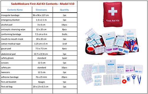 -. Title : SadoMedcare Classic All in One Complete First Aid Kit - 72 pieces Medical Kit, Travel Emergency Kit, Hiking First Aid Kit, Emergency Survival Go Bag, Size Small or Medium