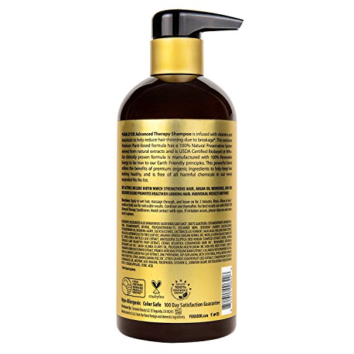 ReleaseDate : 2017-05-08 Studio : Vital's Cosmetics International Publisher : Vital's Cosmetics International Binding : Health and Beauty Product Description PURA D'OR Advanced Therapy Shampoo is infused with vitamins and botanicals to help reduce hair thinning due to breakage. This exclusive Premium Plant-Based formula has a 100% Natural Preservative System derived from natural extracts and is USDA Certified Biobased at 90% . Our clinically proven formula is manufactured with 100% Renewable Energy to be true to our Earth Friendly principles. This powerful blend utilizes the benefits of premium organic ingredients to help keep hair looking healthy, and is free of all harmful chemicals in our newly expanded No list. 0