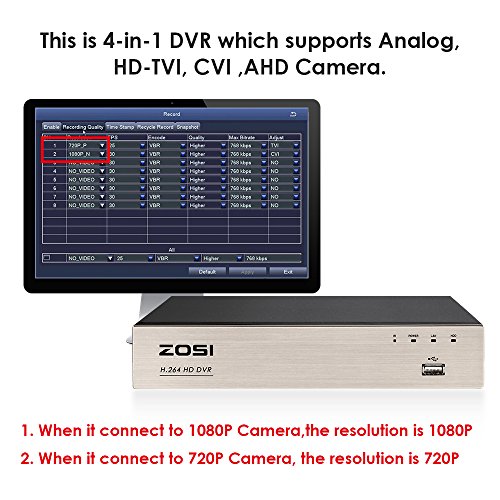 ZOSI H.264 8 channel 1080N Digital Video Recorder ,This 8channel 4-in-1 DVR which supports Analog, HD-TVI, CVI ,AHD Camera. it provides you the flexibility to extend additional cameras.You can add more 4pcs 720P or 1080P cameras.