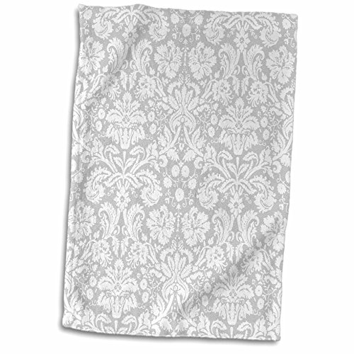 3D Rose Silver and White Damask Pattern-Grey Gray-Fancy French Floral Swirls-Stylish Classy Elegant Towel, 15" x 22"