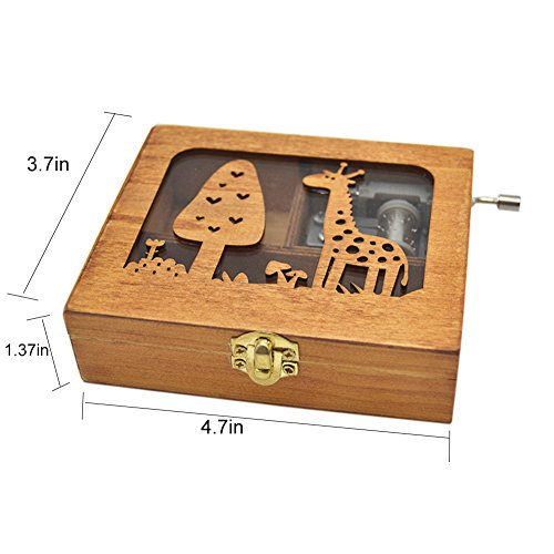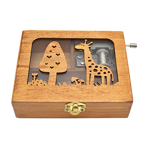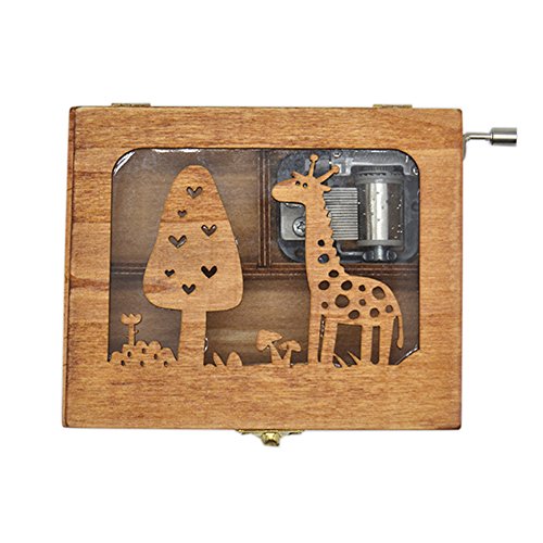 Anlydia Vintage Wooden Animal Pattern Hand Cranked Jewelry Music Box Trinket Box (Giraffe)