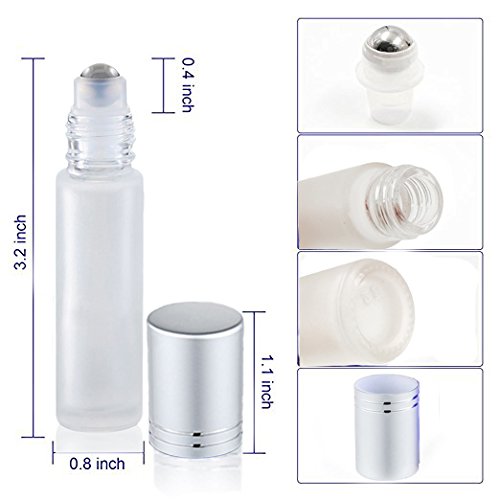 6 Pcs 10ml Thick Amber Glass Roller Bottles On Essential Oil Empty Perfume Bottle 10cc Stainless Steel Roller Ball White
