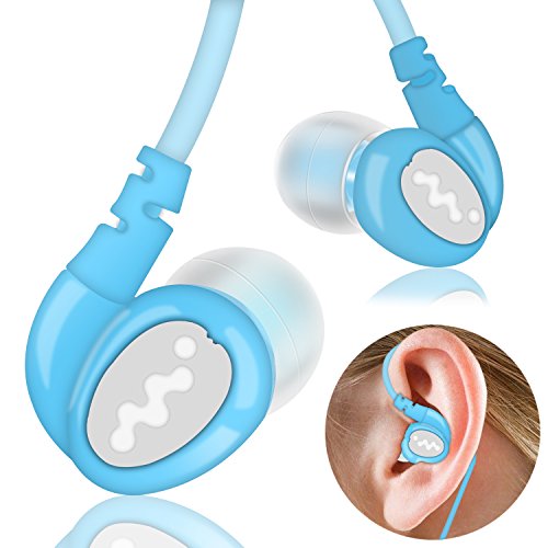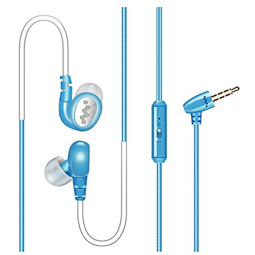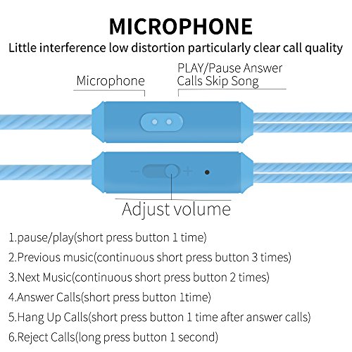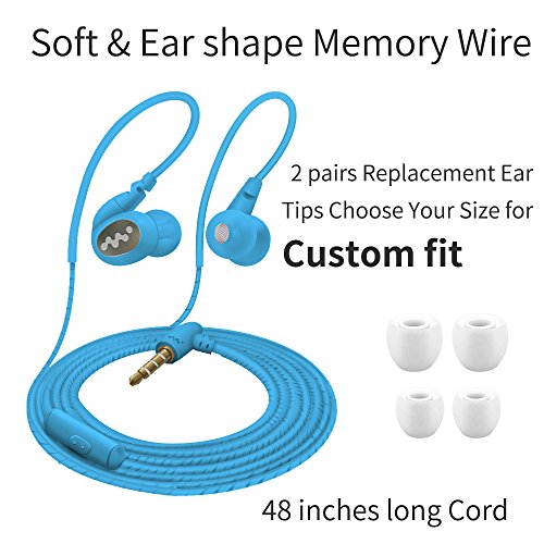 Over Ear In Ear Noise Isolating Sweatproof Sport Headphones Earbuds Earphones with Remote and Mic Earhook Wired Stereo Workout Earpods for Running Jogging Gym for iPhone iPod Samsung (Black) (Blue)