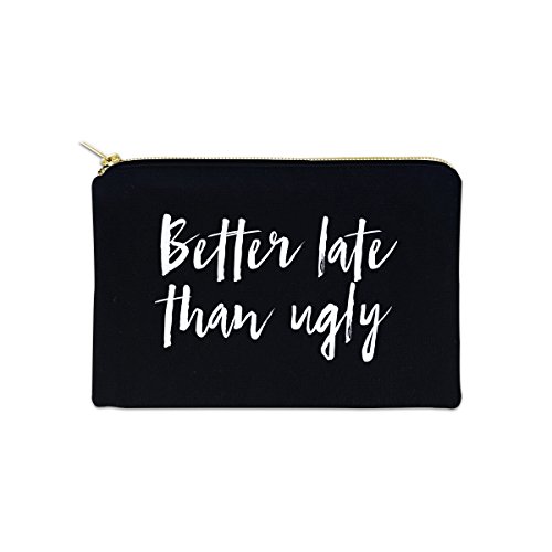 Better Late Than Ugly 12 oz Cosmetic Makeup Cotton Canvas Bag - (Black Canvas)
