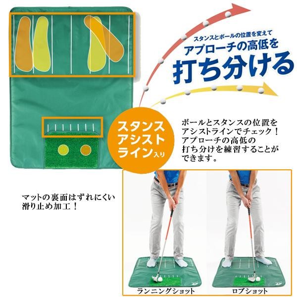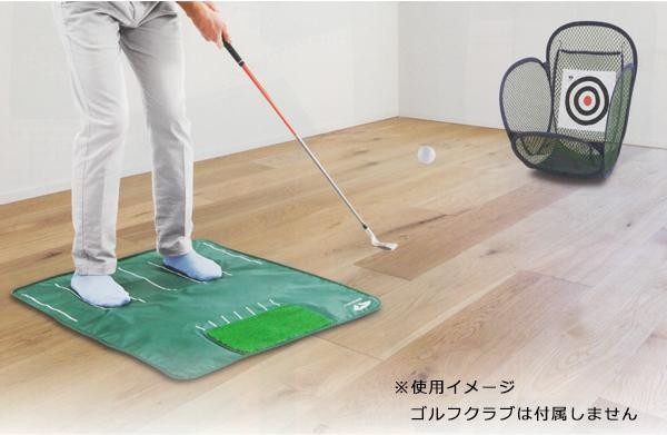 | 自宅で簡単にスタンスを確認しながらアプローチを練習できます。室内でも安心な柔らかい練習用ボール付きです。 |