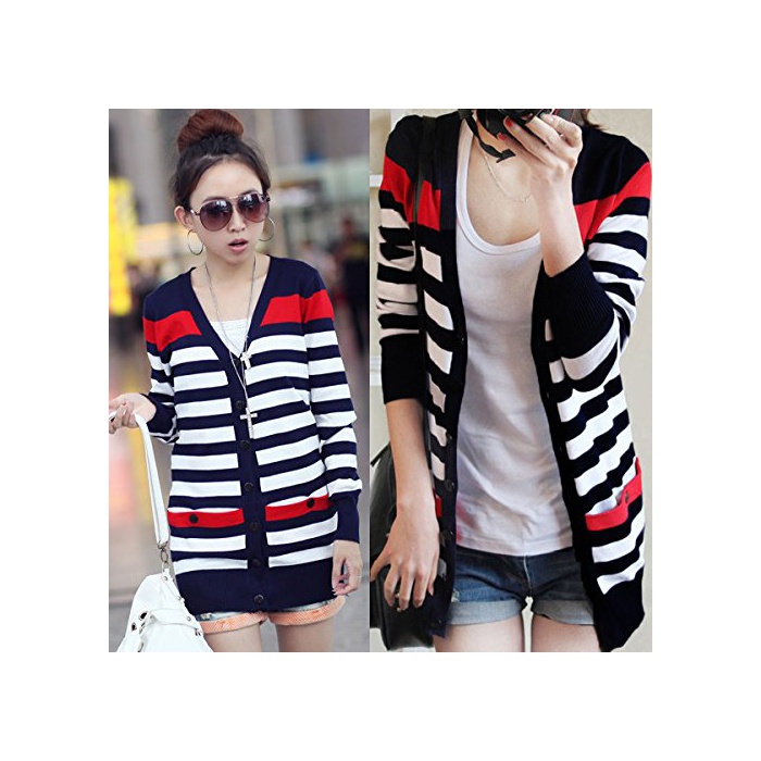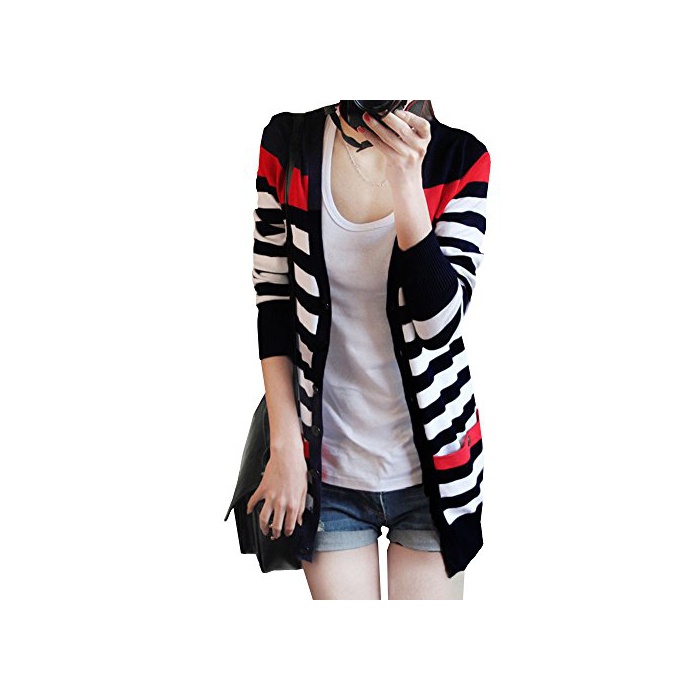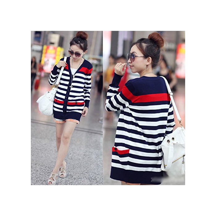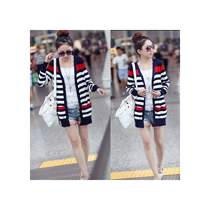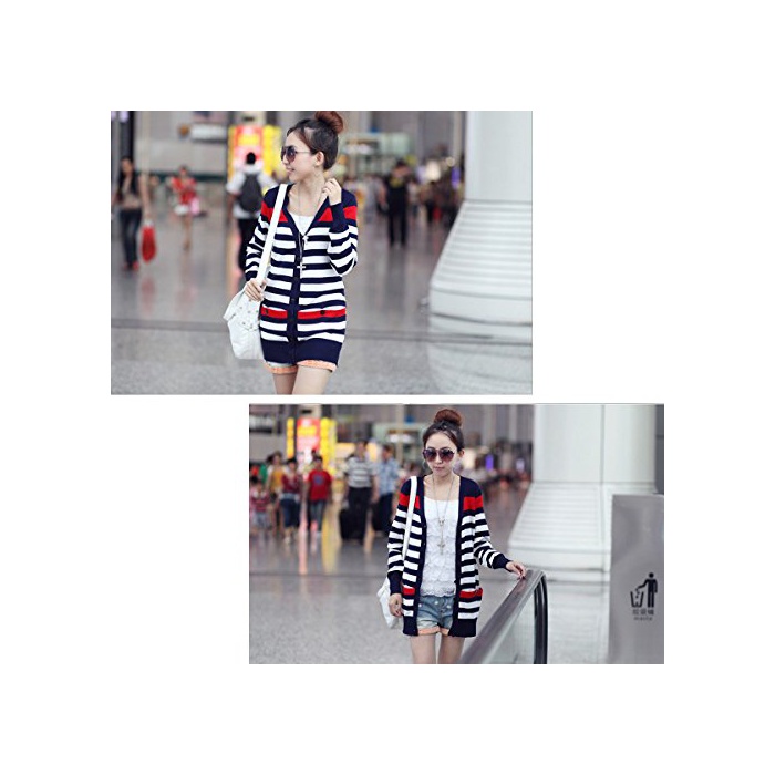 Growin (《구로운》)growin 가디건 UV컷 긴 소매 톱스 컷소우 보더 마린 니트 카데 추동 레이디스 [웨어&슈즈]