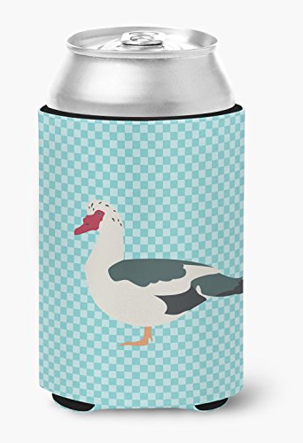Caroline's Treasures BB8038CC Muscovy Duck Blue Check Decorative, Can Hugger, Multicolor