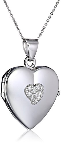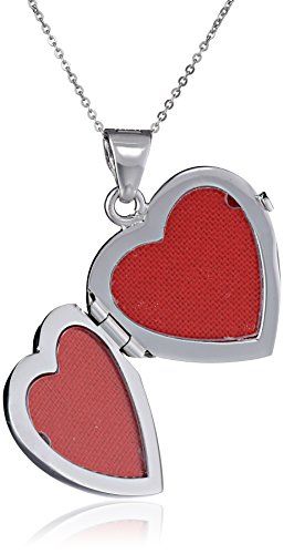 Italian Sterling Silver Reversible Filigree Red Heart and Cubic Zirconia Heart Locket Necklace, 18"