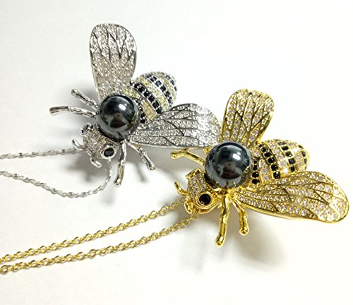 -. Binding : Jewelry -. Brand : NONOSIZE -. Department : womens -. Feature : There is a pin on the back and come with a silver plated chain, can be worn as a pendant necklace or as a brooch. / A glittering studded rhinestone bee will make its owner look very noble. You can wear it to the dancing party or wedding.Pin it on the lapel of an evening dress or high on the elegant shawl. / Like the fragrant flowers attract bees and butterflies, with a shiny and beautiful Brooch will make you more attracted the attention of the opposite sex / Pendant size : length 30mm, width 40mm, black pearl diameter 10mm / Chain length : 16.5" (42cm) -. ProductGroup : Jewelry -. ProductTypeName : FASHIONOTHER -. Title : Bling Bling Pendant/Brooch Queen Bee Rhinestone Brooch Fashion Necklace Golden or Silvery