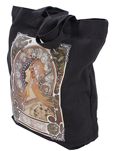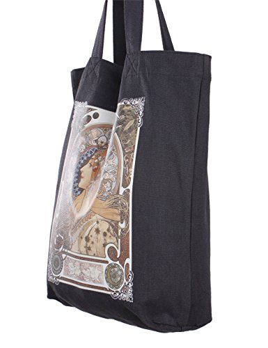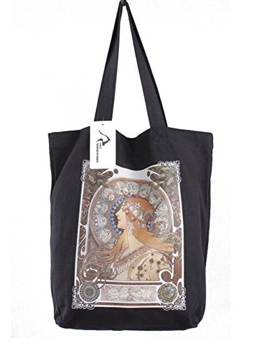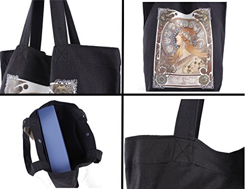 PET SHINEWINGS Washable Canvas Shopping Bags Reusable Reinforced Grocery Tote Bag Goddess Black