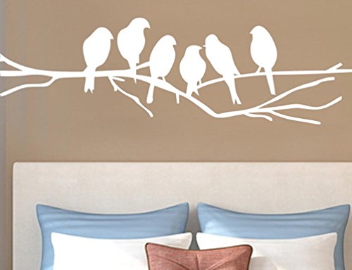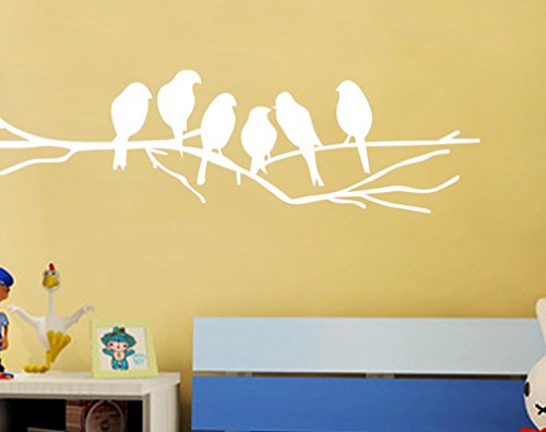 BIBITIME Tree Branches Wall Decal Roosted 6 White Birds Vinyl Sticker for Children Bedroom Nursery Kids Room Decor,DIY 15" x 4"
