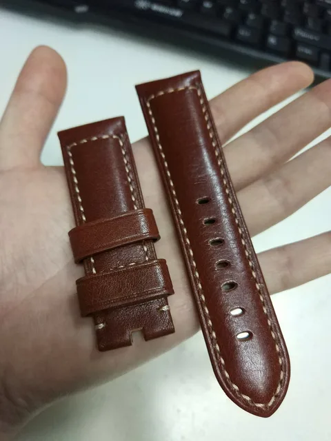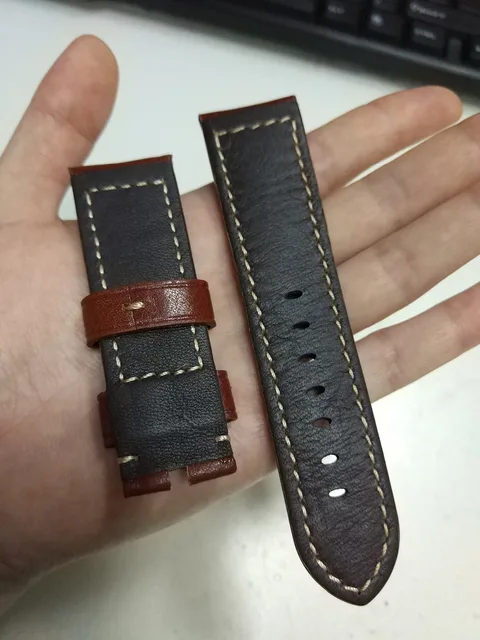 D358 패션 적갈색 이탈리아어 정품 가죽 시계 스트랩 24/22 미리메터 손목 버클
