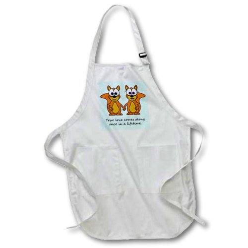 3dRose apr_6156_4 True Love Comes Along Once in a Lifetime Cute Squirrels Design Full Length Apron with Pockets, 22 by 30-Inch, Black