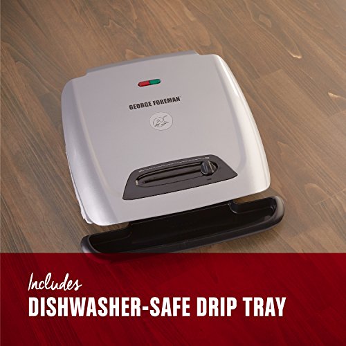 Get healthier meals in minutes. The 121 Sq. In. cooking surface features patented sloped design and double nonstick coating to allow fat and grease to drain away from food. Signature Foreman embedded heating elements ensure even heat from the center to the sides of the grill and faster temperature recovery once food is placed on the plate. All this, plus dishwasher-safe accessories including a custom drip tray. This is the perfect size for preparing meals for 8 people.Feature