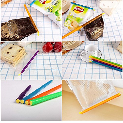 Plastic Bag Sealer Clips Sticks Chips by Trendy Cooks (12pcs), Keep Bags Air / Water Tight, Never Waste Food Again, No Moving Parts, Slim Sticks for Easy Storage, Fully Reusable (Mixed)