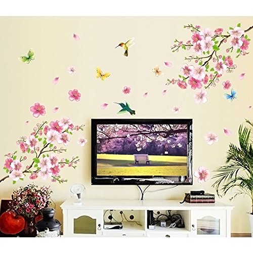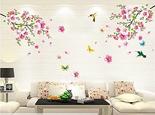 LiveGallery Pink Cherry Blossom Tree with Butterfly Vinyl Art Wall Decal Pink Cherry Blossom Tree Wall Decal, Flower Floral Wall Sticker with Butterfly, Vinyl Art Wall Decal, Wall Decal Mural