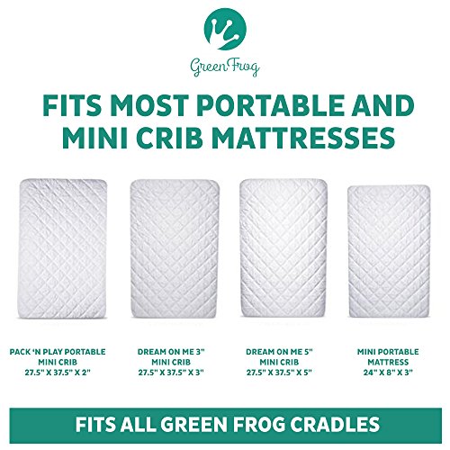 - DESIGNED WITH YOUR BABY'S COMFORT AND SAFETY IN MIND: Green Frog sheets are super absorbent, bacteria resistant, odorless, hypoallergenic and machine washable! perfect for a baby's sensitive skin. The soft, quilted peach microfiber fabric top absorbs liquids almost Instantly and the fully waterproof lining protects your mattress.