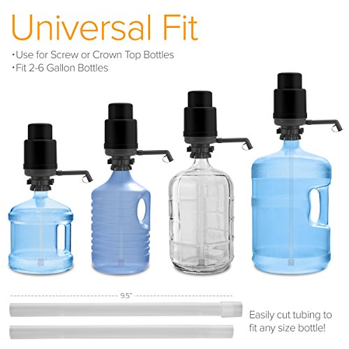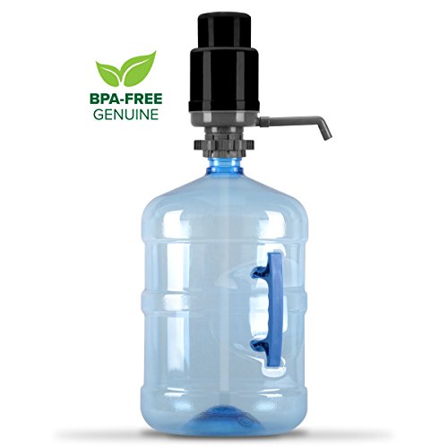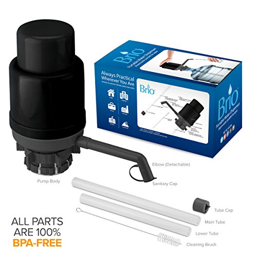 Brio Universal Manual Drinking Water Pump - Fits Most 5-6 Gallon Water Bottles Including Glass (Grey/Black)